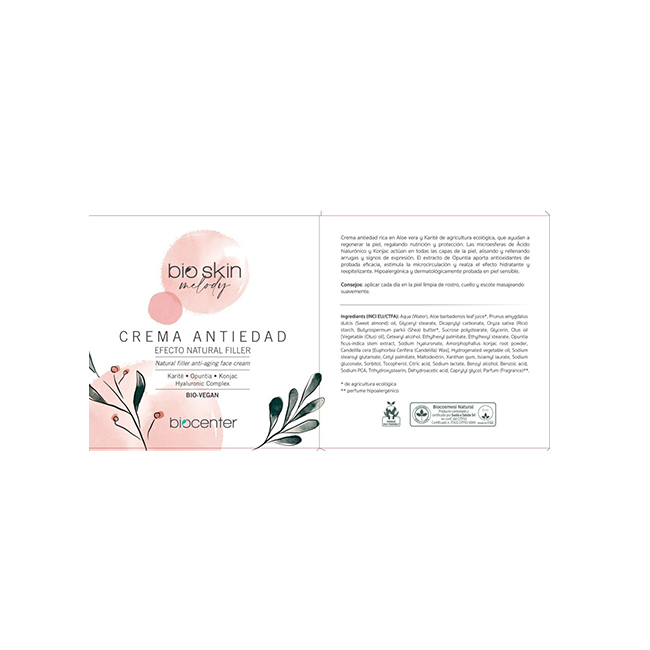 Crema antiarrugas natural Bio Skin Melody certificada Ecológica y Vegana, en envase Ecofriendly.