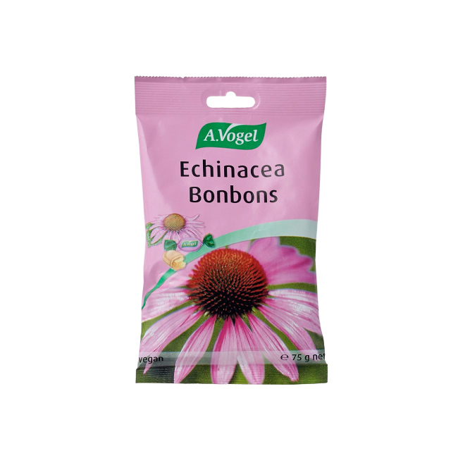 Composición: Azúcar, jarabe de glucosa, jarabe de azúcar invertido, agua, acidificante: ácido cítrico, polvo de acerola, concentrado de grosella negra, aromatizantes naturales, concentrado de Echinacea purpurea 0,2 %, extracto de saúco, extracto de plantas, sal.