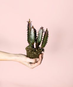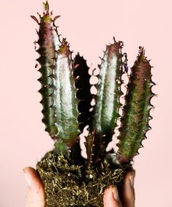 Imagina una euphorbia única con tallos verdes que se vuelven rosados intensos a medida que maduran. Esa es la Euphorbia Trigona Rubra, también conocida como “planta cactus africana” o “candelabro africano”.