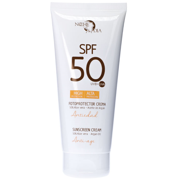 Fotoprotector Solar Antiedad FPS 50 Noche Dia 200ml recomendado para pieles sensibles con 50% Aloe Vera y Aceite de Argán.