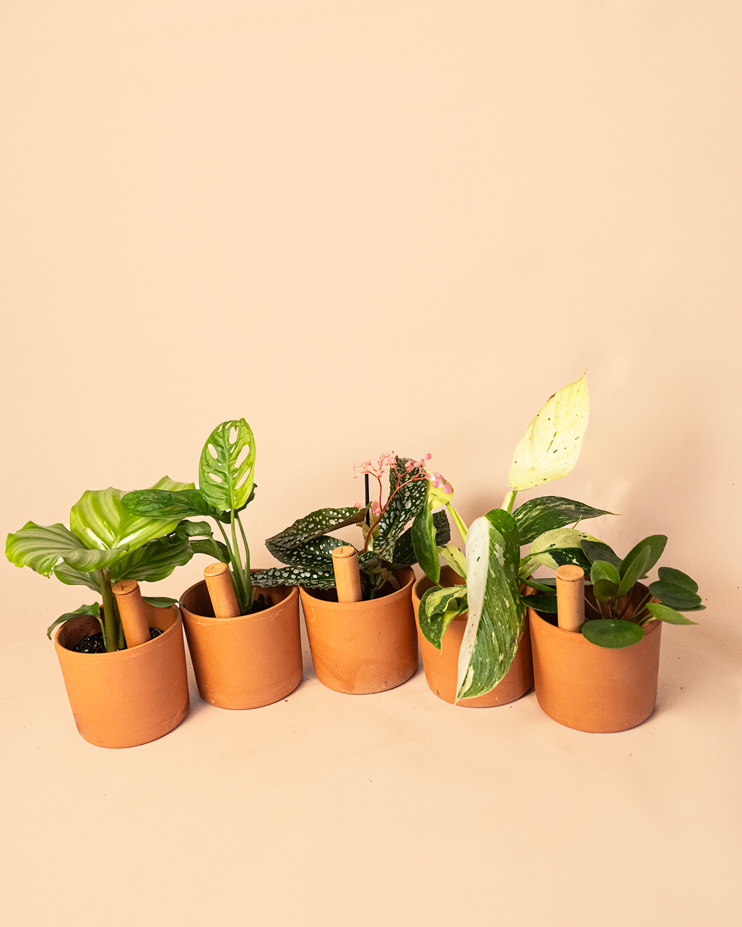 Con sus 5 mini tubos de autorriego, hechos a mano por artesanxs locales, podrás olvidarte de regar tus bebés durante días. Fabricados con terracota microporosa, permiten que tus plantas absorban justo la cantidad de agua que necesitan gracias a un proceso natural de capilaridad. Adiós a los riegos excesivos o insuficientes, aquí manda la naturaleza.