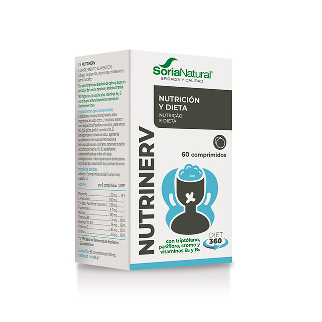 Nutrinerv está elaborado con una combinación de Triptófano, magnesio, Vitaminas C, B6, B3, extracto seco de pasiflora, que mejora la actividad del cerebro, ayudando en épocas de decaimiento.