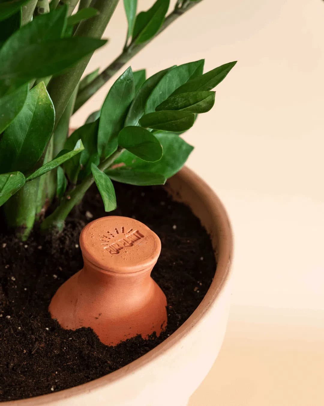 La olla de autorriego natural de 1L será perfecta para plantas grandes y huerto, manteniendo tus plantas húmedas durante días. Entierra la olla dejando únicamente el cuello visible, rellénala de agua y cierra la tapa. Gracias a la porosidad de la terracota, tus plantas absorberán solo el agua que necesitan, ahorrando hasta un 70% más de agua que con el riego convencional.
