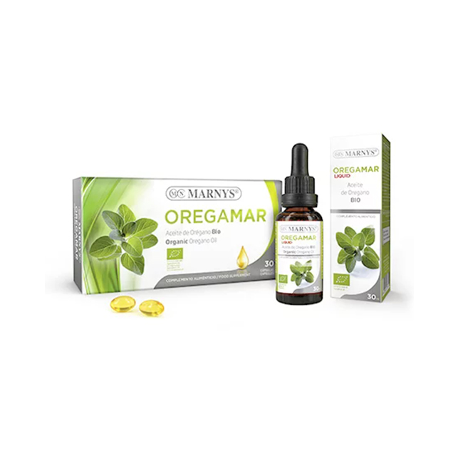 El Carvacrol es un polifenol y es el principal compuesto bioactivo del Orégano. MARNYS® Oregamar Bio contiene un mínimo de 60% de carvacrol y 4% de timol. También contiene aceite de oliva, cuyo contenido en ácidos grasos monoinsaturados Omega 9 (ácido oleico), son un valioso apoyo para el bienestar corporal. El Orégano es utilizado ampliamente como agente culinario, además de aromatizante-saborizante y en el herbolario tradicional, donde se ha documentado su útil acción en la digestión. MARNYS® Oregamar Bio y su aceite de Orégano tiene la siguiente propiedad: