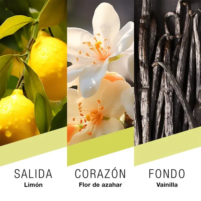 Una fragancia vibrante con limón, flor de azahar y un toque cálido de vainilla, inspirada en el lujo italiano.