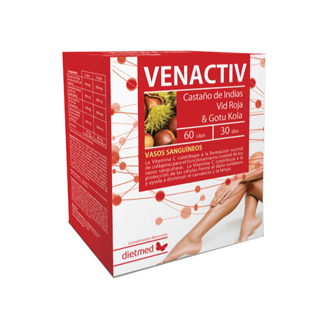Ingredientes por 2 cápsulas: Castaño de Indias (mínimo de 20% de aescina) 200 mg, Gotu Kola (mínimo de 20% de asiaticosídeo) 200 mg, Rusco (mínimo de 20% de ruscogenina) 200 mg, Vid Roja (mínimo 95% de leucoantocianidinas) 200 mg, Vitamina C 80 mg (100% VRN*).* Valor de Referencia de Nutrientes.