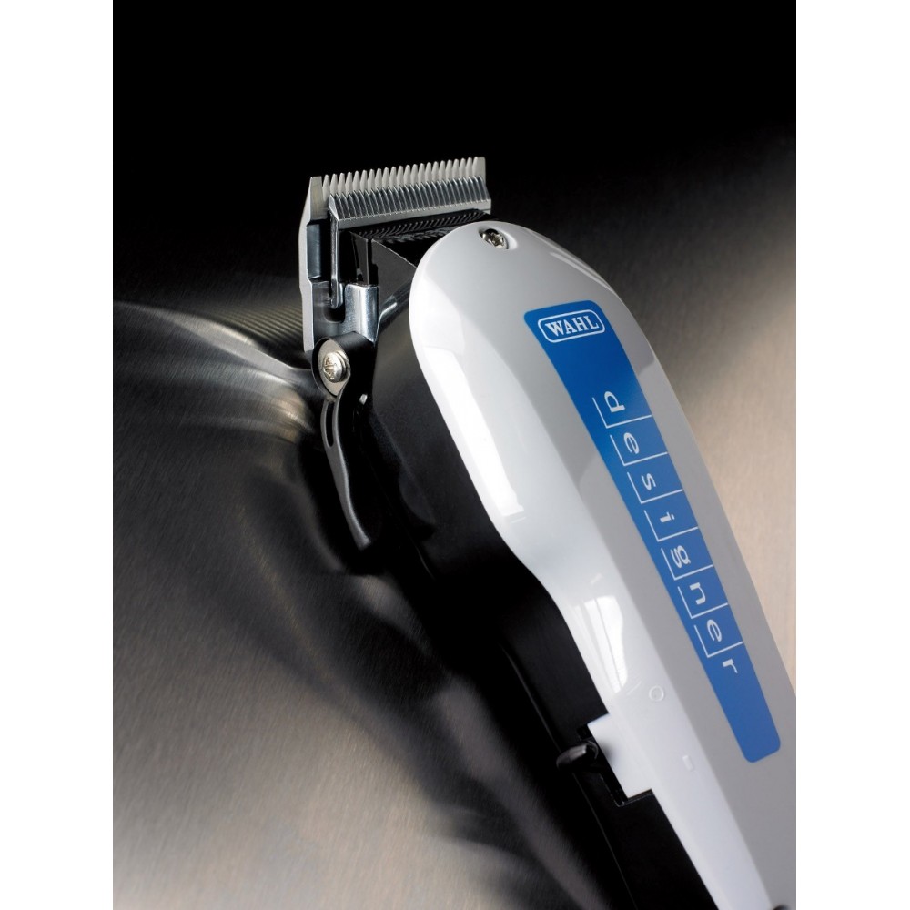 La máquina cortapelo de Wahl ha sido diseñada con un cabezal de corte de precisión cromado Designer que es idóneo para el corte del pelo largo.